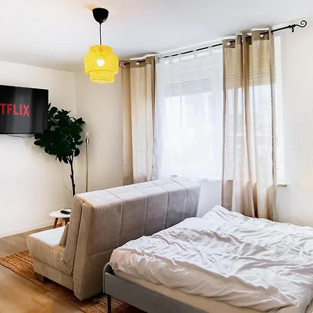 De accommodatie heeft ook een keuken met een magnetron, een waterkoker en een koelkast. Sakura Sushi Grill trakteert gasten op Aziatische maaltijden en ligt op 13 minuten loopafstand van het 1-slaapkamer appartement. Deze accommodatie is op 5 minuten wandelen van Im Kuckucksschlag bushalte en op enkele minuten rijden van Kaiserslautern Centraal treinstation.